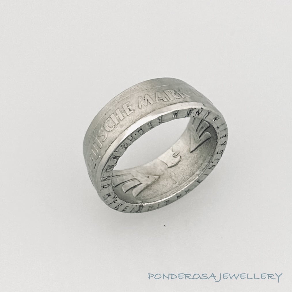 This 1975 coin from East Germany has been turned into a size 8 ring and is 50 % copper. Enjoy wearing this very unusual piece of History.