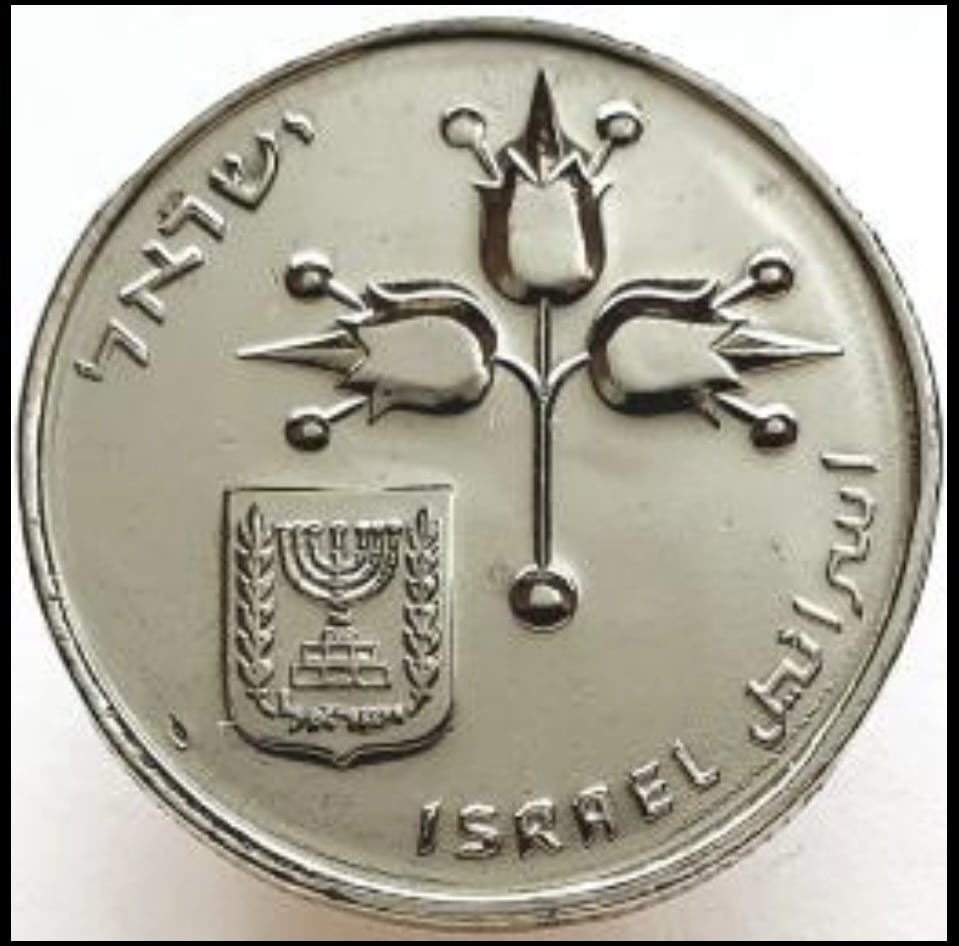 This 1967 – 1980 coin from Israel can be turned into a size 6 – 10 ring and has a copper content of 75 %. Enjoy wearing this very unusual piece of History.