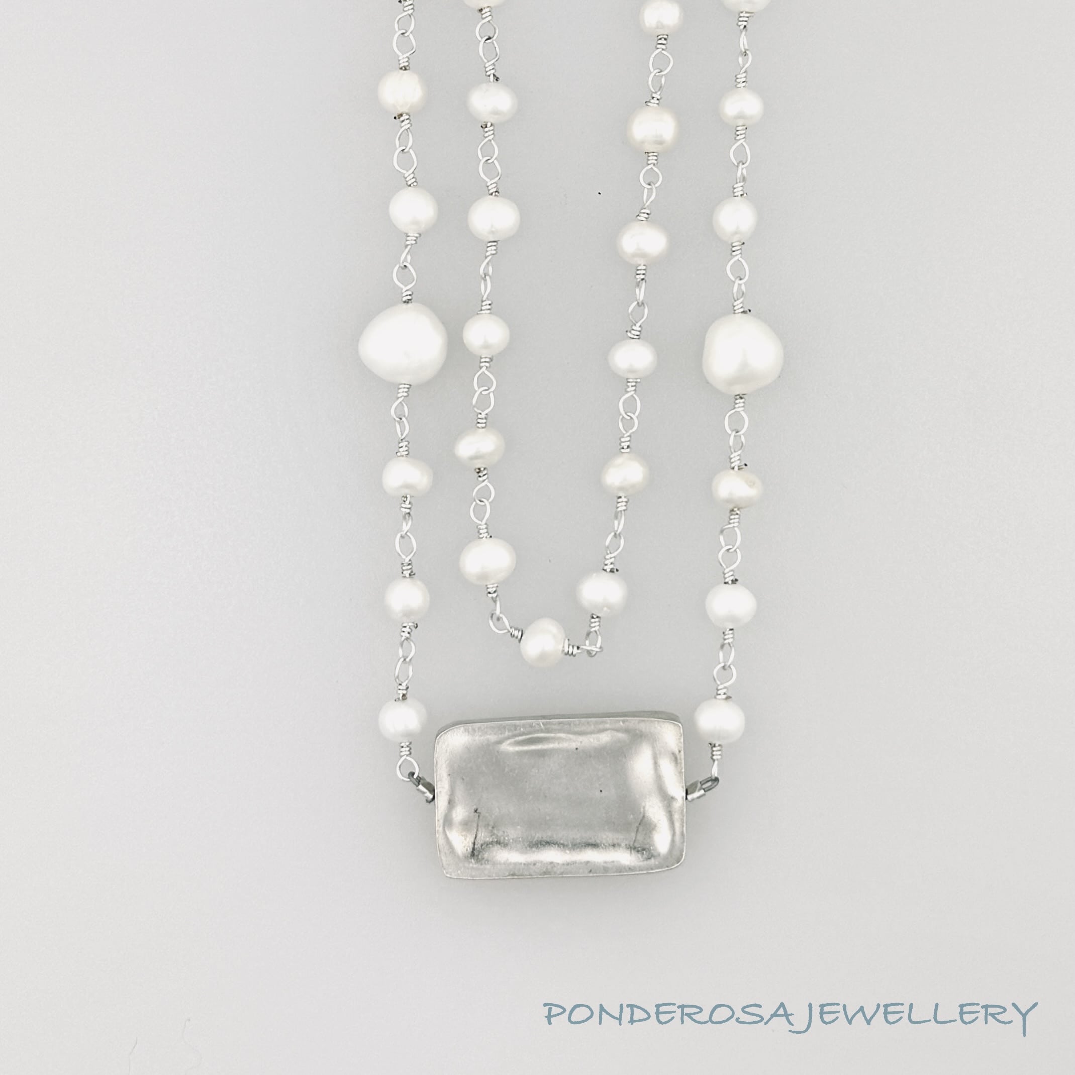 • Necklace material: sterling silver and freshwater pearls