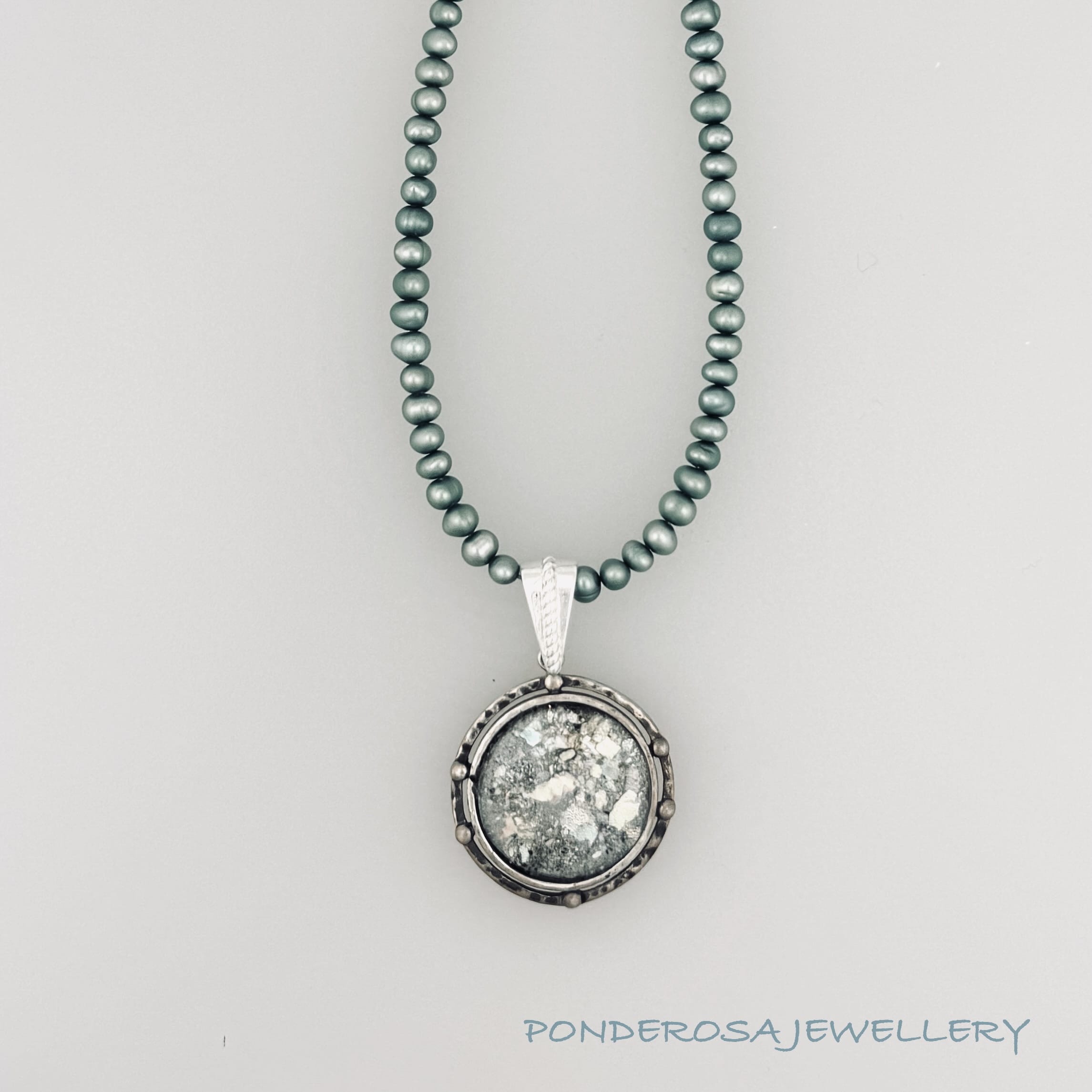 This piece of 2000 year old Roman Glass, from the Middle East, is set in sterling silver and has fabulous Patina. This is a special piece of jewellery to add to any collection.