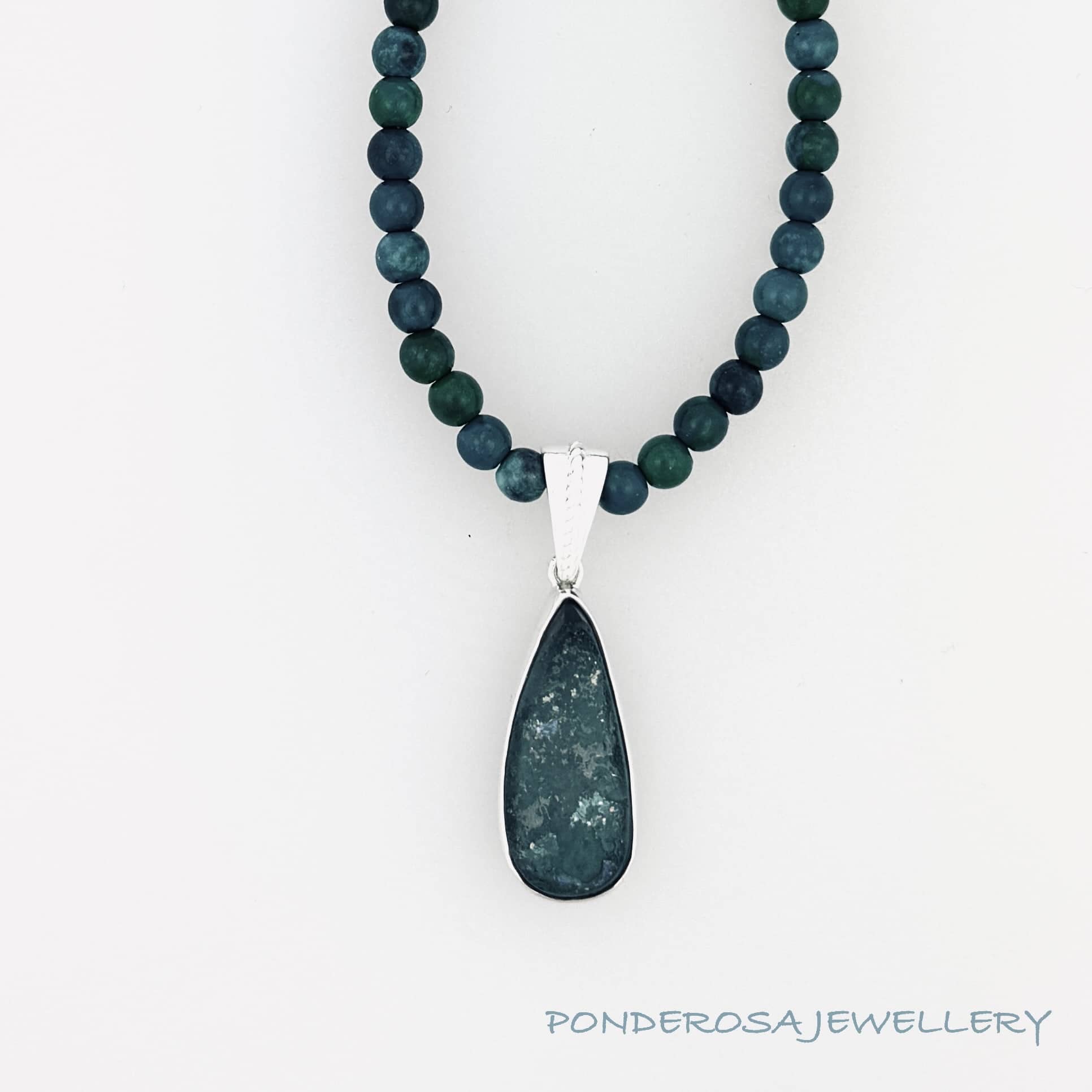 This piece of 2000 year old Roman Glass, from the Middle East, is set in sterling silver and has fabulous Patina. This is a special piece of jewellery to add to any collection.