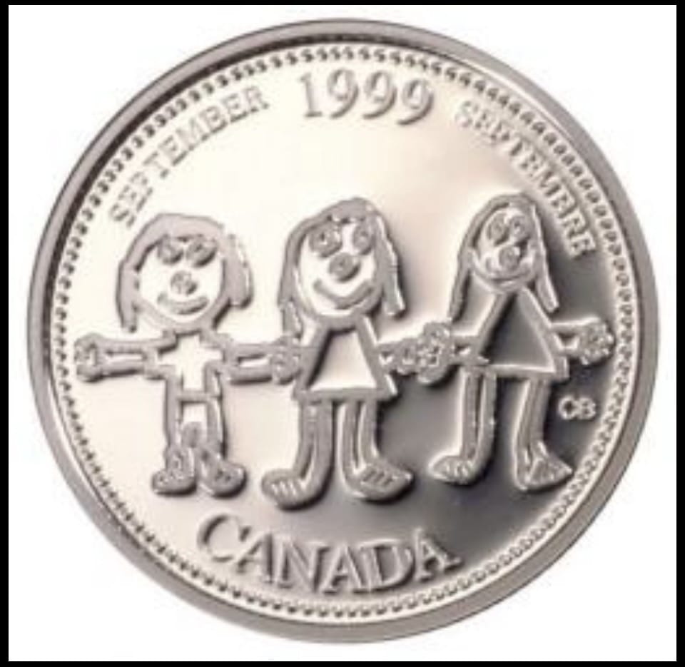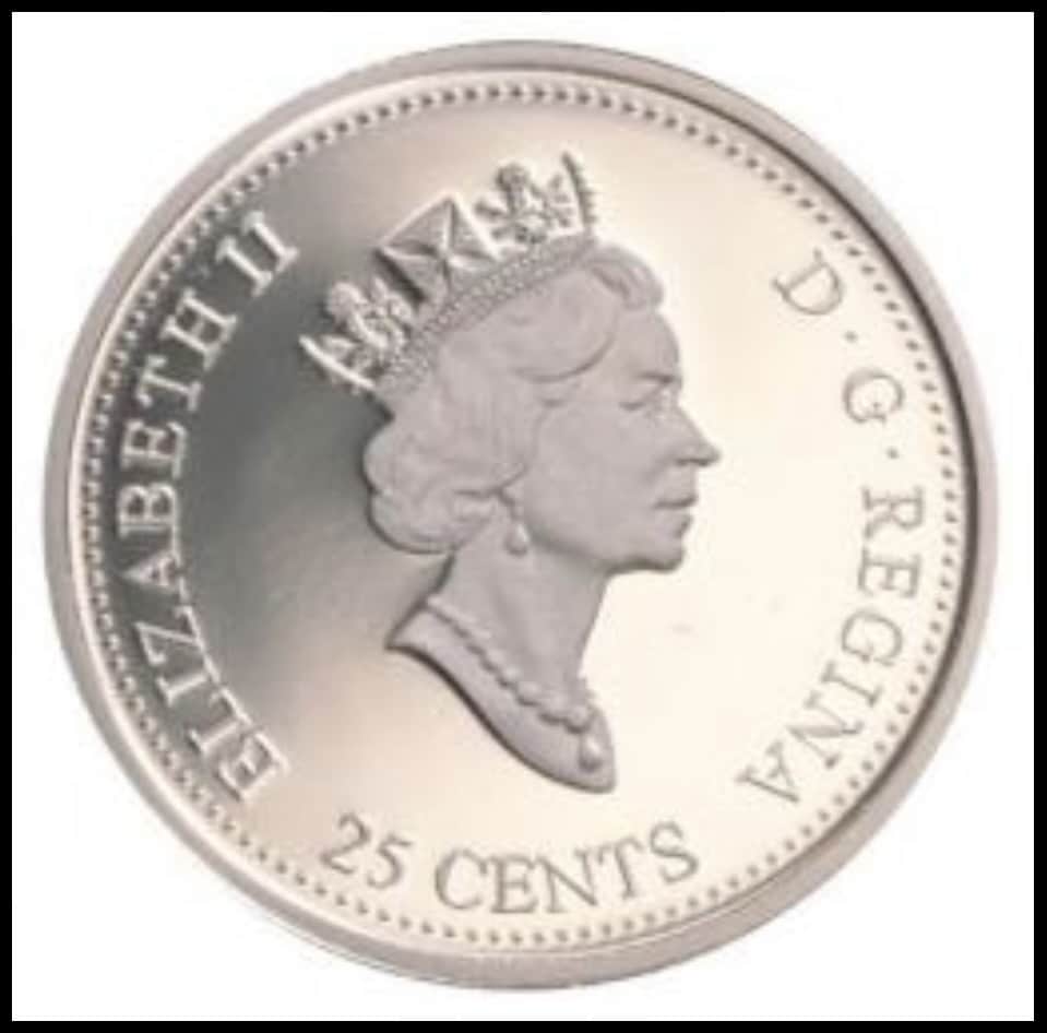 This Canadian 1999, New Millennium, twenty five cent coin can be turned into a size 5 – 7 ring. This coin ring has a silver content of 93 %. Enjoy wearing this very unusual piece of History.