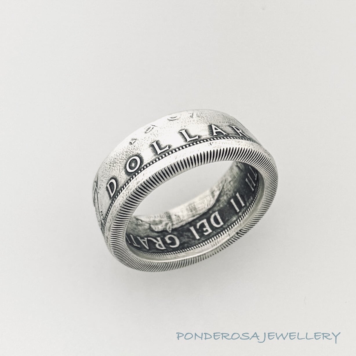 This 1961 Silver Coin has been turned into a size 13 ring. This coin ring has a silver content of 80 %. Enjoy wearing this very unusual piece of History.